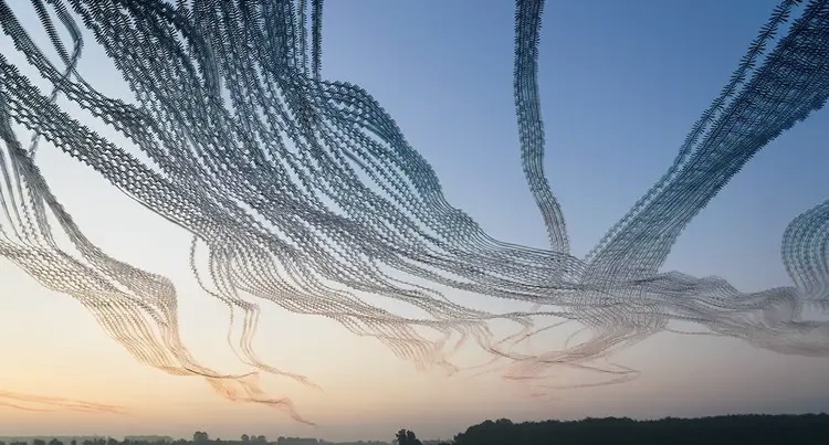 A bolas of three or four wire screams Jockeying across each other on their switchback wheel of death. They swat past, hard-fletched