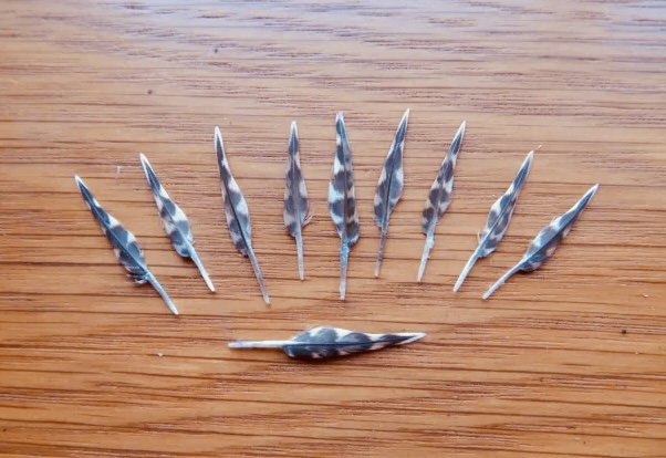 Woodcock, like their close relative the snipe have very prominent pin feathers. Pin feathers are stiff feathers that stick out of the leading edge of the woodcock’s wing, they are quite often used for painting and its become a tradition to paint Woodcock using their own pin feathers. A gun will quite often keep the pin feather in his cap as a badge to show he is adept enough a shot to have managed to bring down a fast, jinking Woodcock.
