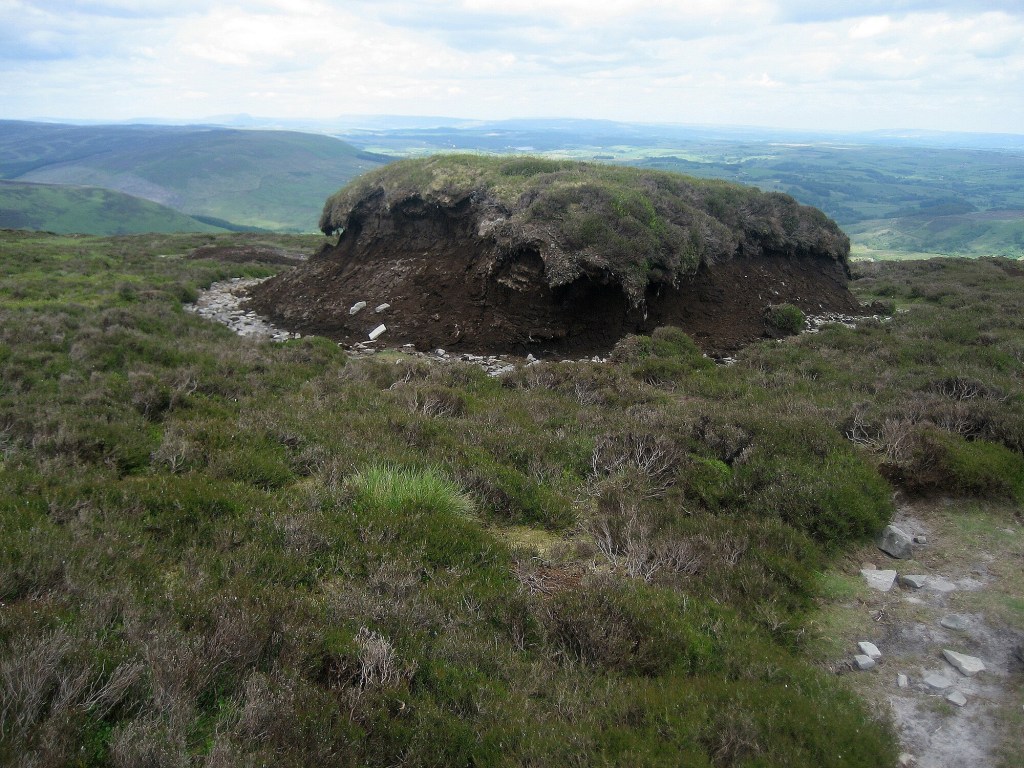 On the fell-tops you may have to navigate around towering stacks and banks of peat, these can often be quite imposing, looming over 6ft tall and are called ‘peat haggs’. They erode inwards from the edges, much like a melting ice berg, leaving bare peat and sometimes bare bedrock behind them, on some parts of the moors work is being done to re-profile them.