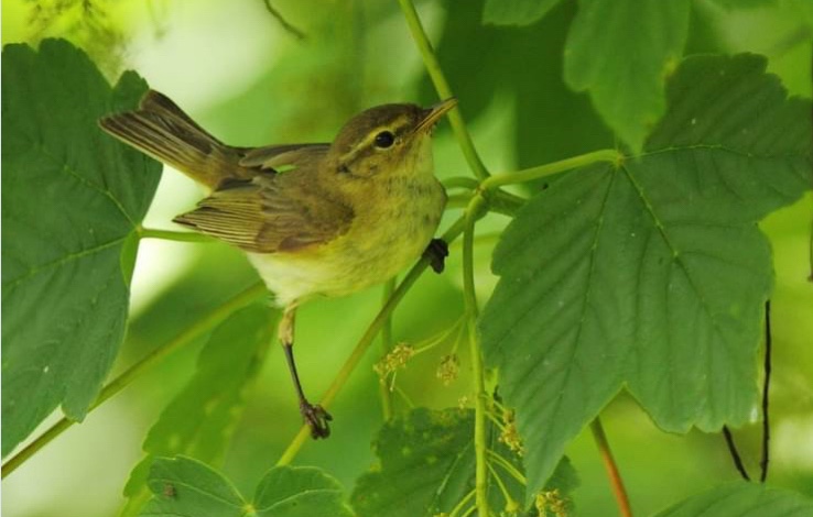 There are several ways of telling the two birds apart, one is by paying attention to their legs, as those of the Willow warbler are more of a pink colour compared to the brown of the Chiffchaffs legs. Another difference is that the wings of a Willow Warbler are longer, as they have a greater distance to cover on their migration, travelling from sub-Saharan Africa.