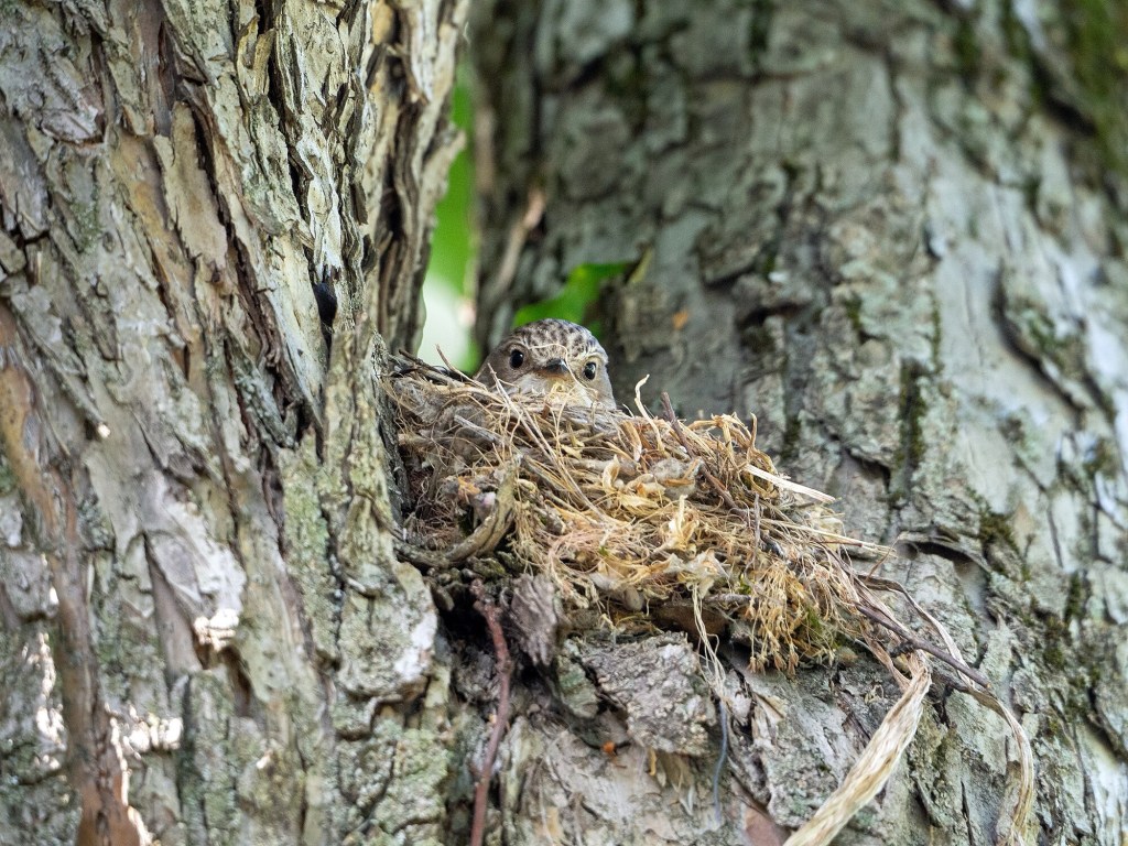 The habitats the Spotted Flycatcher can be found in are varied, as long as there are flying insects, perches, and mature deciduous trees to nest in it seems to be happy in a wide spectrum of places, though it seems to prefer large, open gardens and parks in particular.