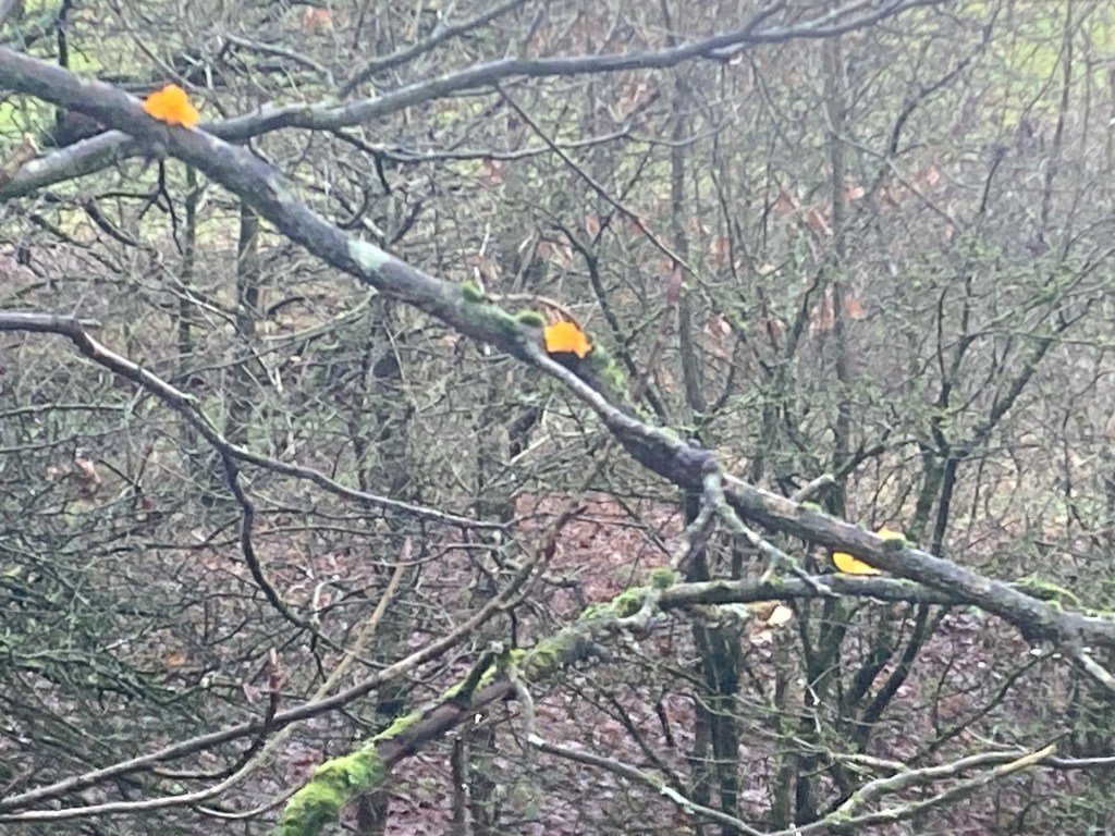 In this case, early on the First of January, the prizes I found, shining like golden jewels in the dark depths of the Oak trees, were a type of fungi known as Witches’ Butter.