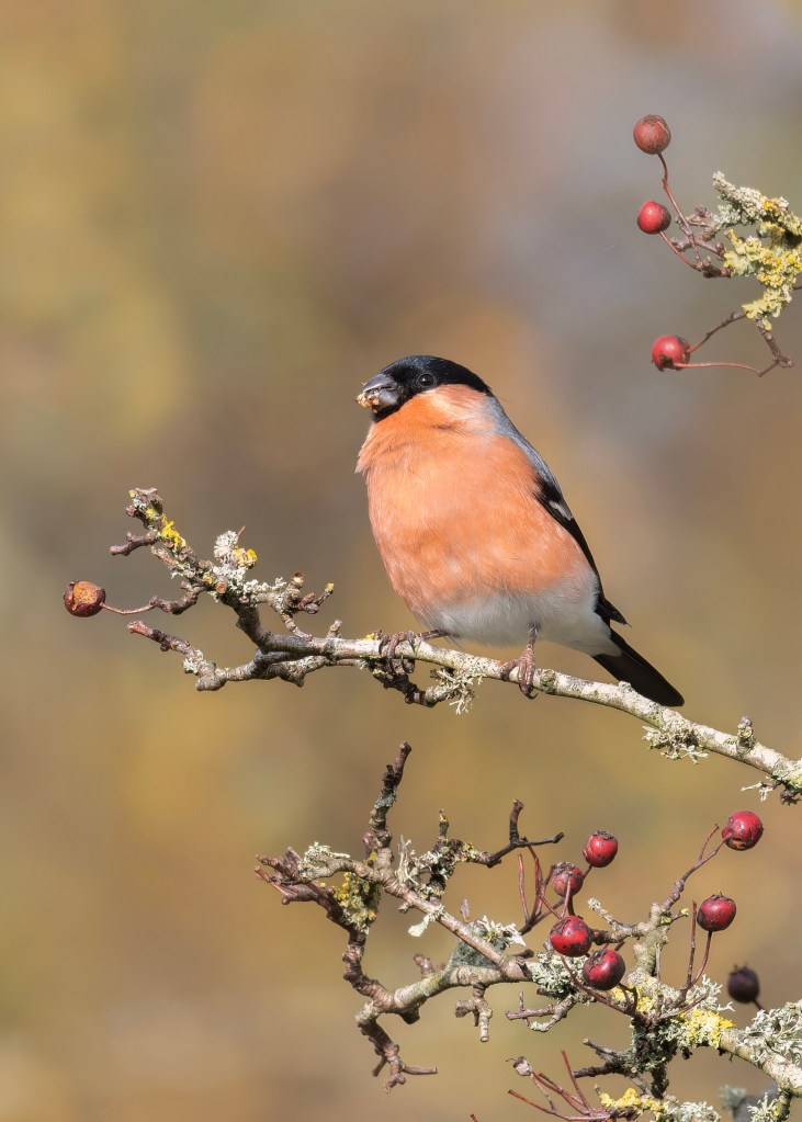 Although they tend to be close-mouthed (or should it be close-beaked?) in the wild, captive Bullfinch can be very vocal, they are even capable of mimicking or being taught simple melodies. (I thought about including a link here to a video of a captive Bullfinch singing but can’t quite countenance the thought of keeping these beautiful wild birds in cages.)