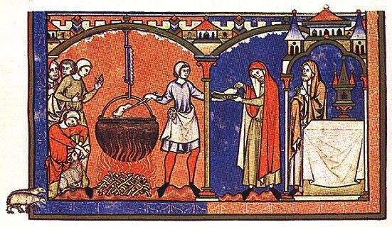 All of the recipes in the Liber cure cocorum were, rather uniquely, written in rhyming verse and included delicacies such as Blanke maunger of fysshe (Blancmange of boiled tench or lamprey with rice and almond milk) and Harus in albotretus (Hares in a broth), they were all written in ancient Lancashire dialect too, which is surprisingly easy to understand!