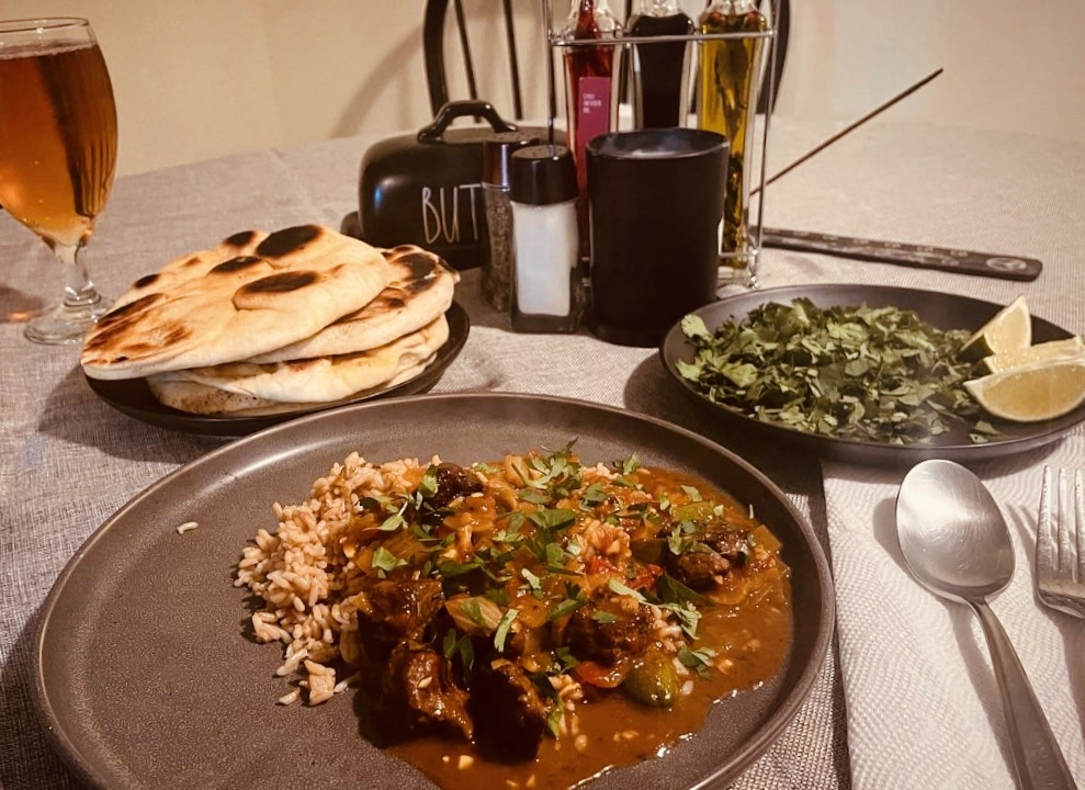 Remove the Parathas or Chapatis from the oven and place on some kitchen roll and take the warm plates out too, also don’t forget to retrieve the bottles of lager from the freezer.