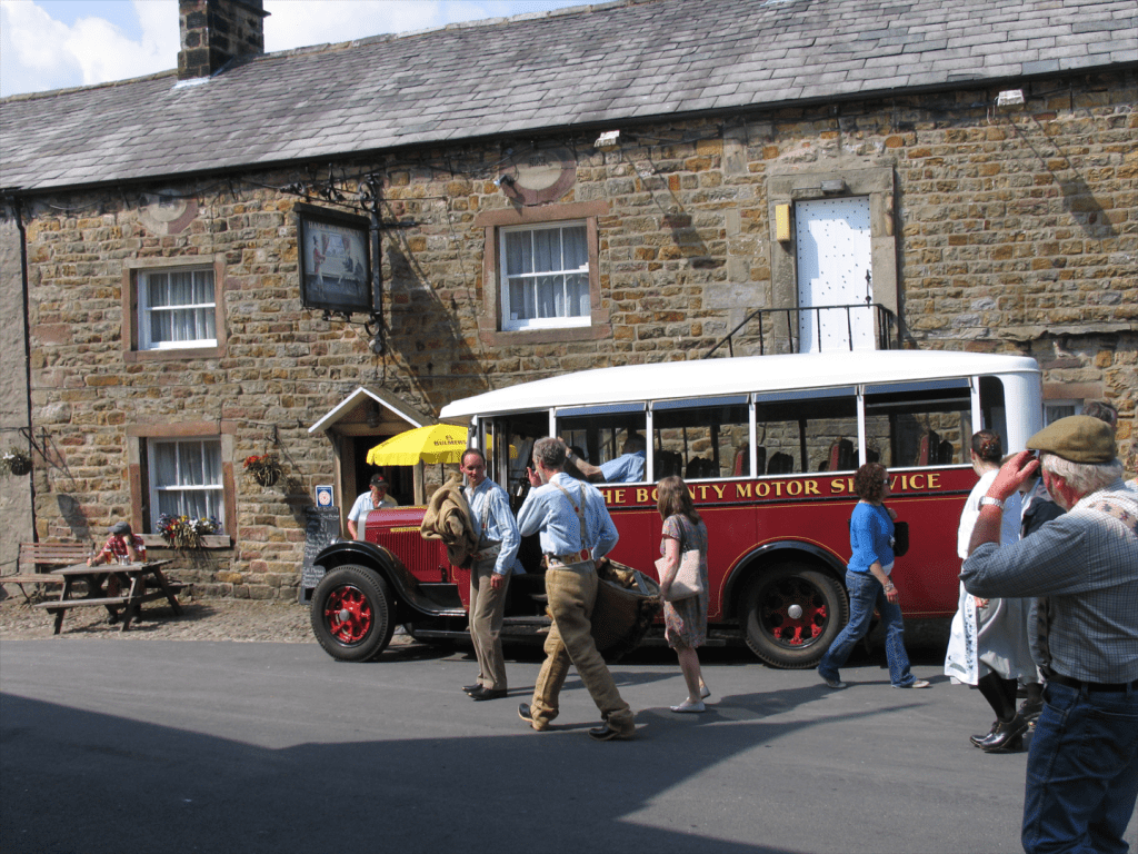 The famous ‘Bounty Bus’, a beautifully restored Reo Speedwagon that once plied the route between t’ Bounty and the Inn at Whitewell at the other end of the valley, stopping at Newton and Dunsop Bridge in-between.