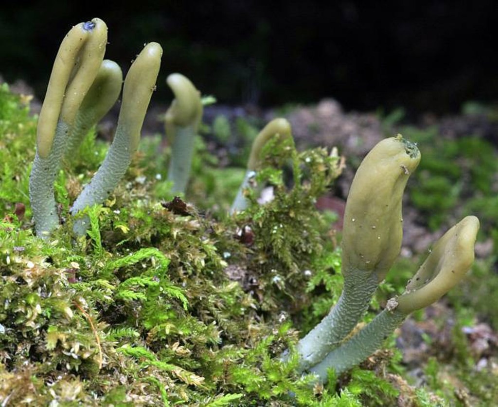 Adding a splash of colour to the typically dark earthtongue tribe is Microglossum viride, with its olive-green fertile head and a rough, scaly stem that can be brownish.