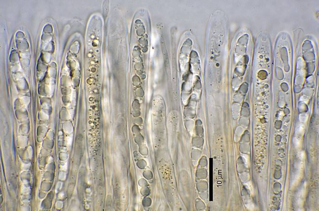 Microscopically, it has long spores (82 to 115 μm) that are septate (up to 13 septa) and paraphyses that may be agglutinated in a brown matrix. This fungus prefers disturbed sites in lowland acid pastures or upland acid grasslands, where bare soil, lichens, and mosses are present, conditions which are especially common on our moorlands and grazed hillsides.