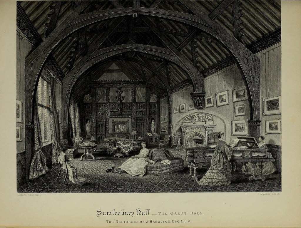 The structure rests on a low stone basement, with rafters resting on wall plates sustained by horizontal spars grooved into the principals, above lay an open roof, a minstrels’ gallery raised 10 feet and separated by a carved oak screen, and the hall’s imposing grandeur was further enhanced by a huge arched fireplace standing 6 feet 9 inches high and 14 feet 9 inches wide.